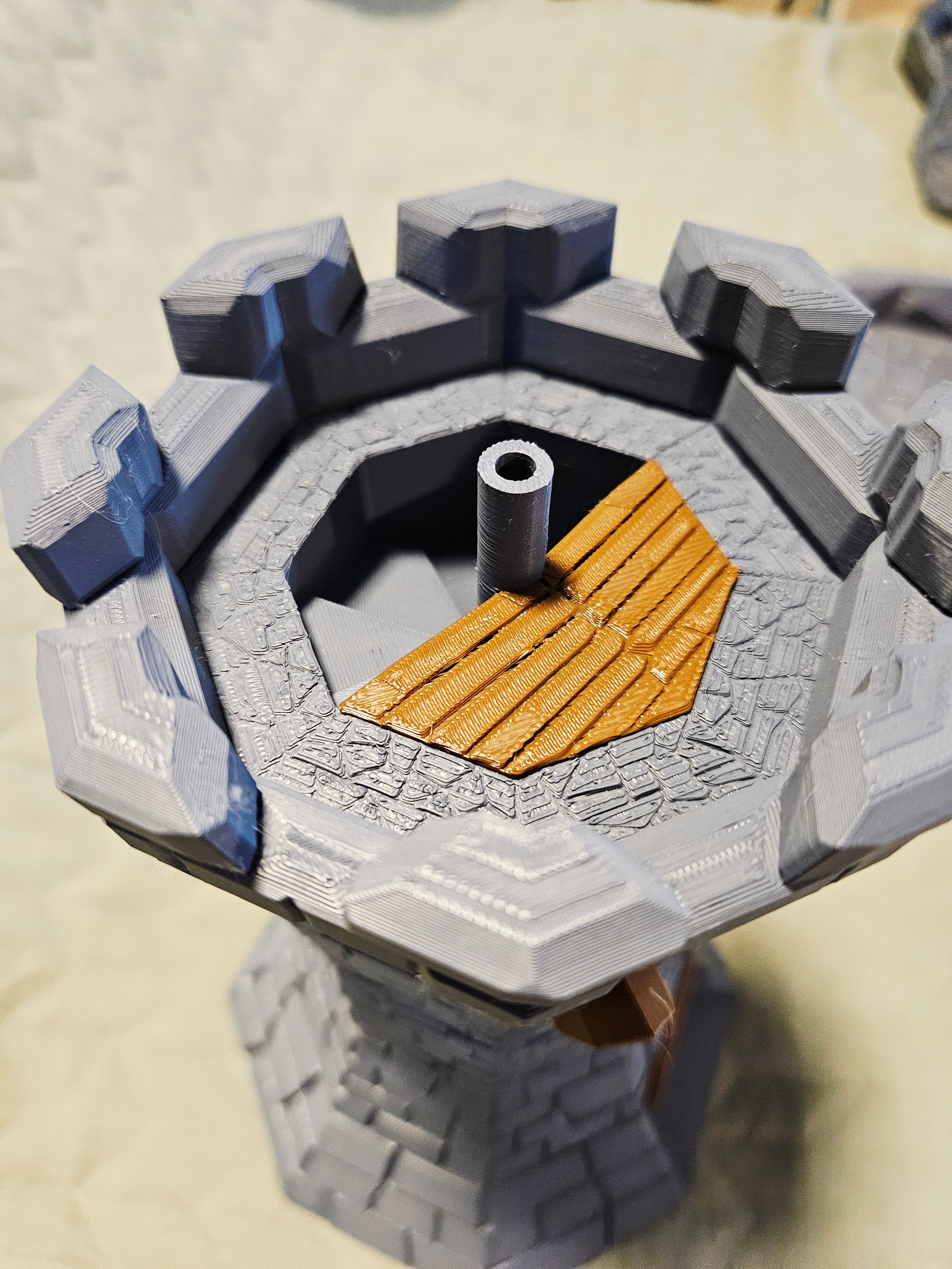 Bring weight and presence to your tabletop with this full-sized dice tower.