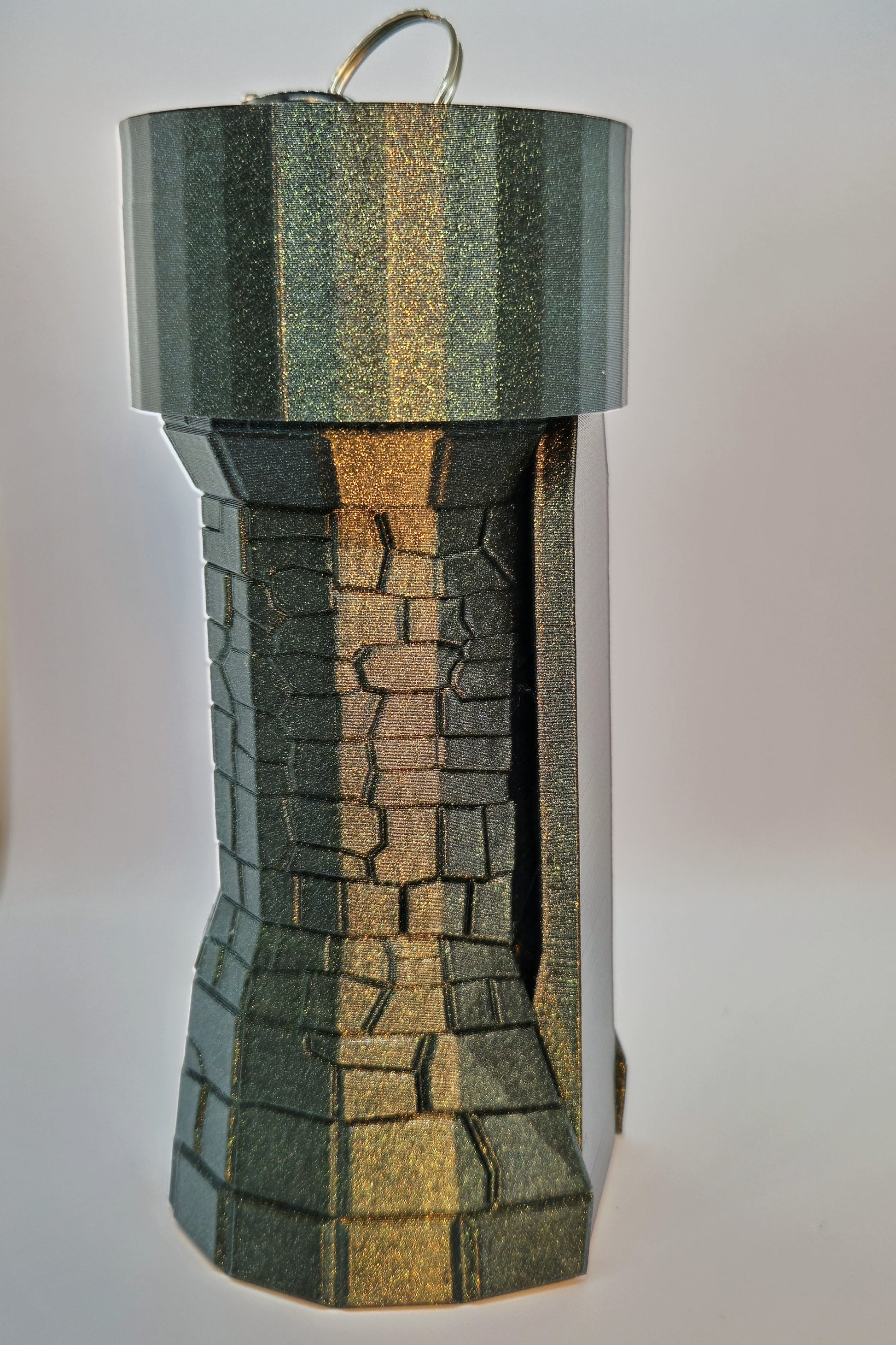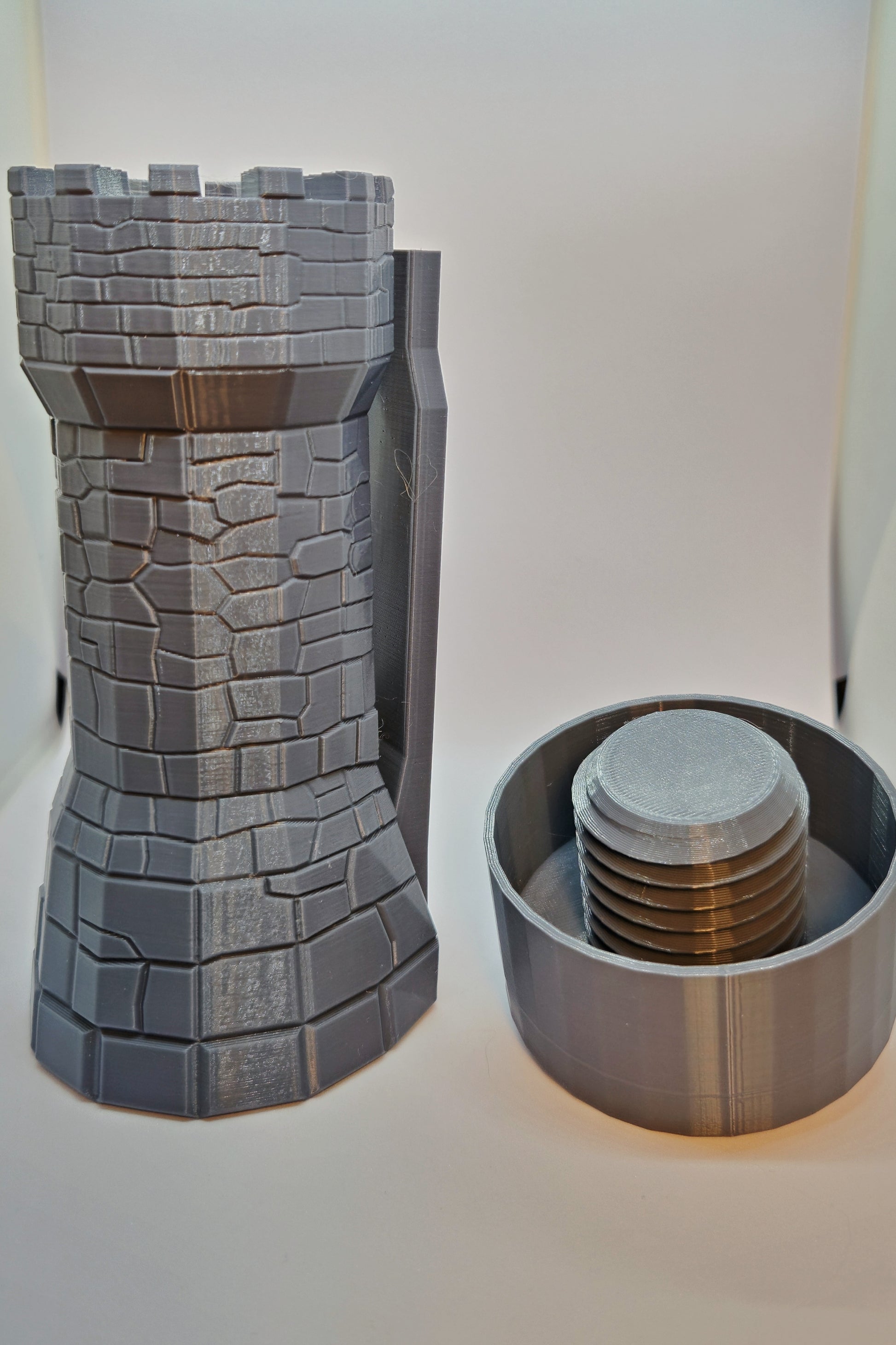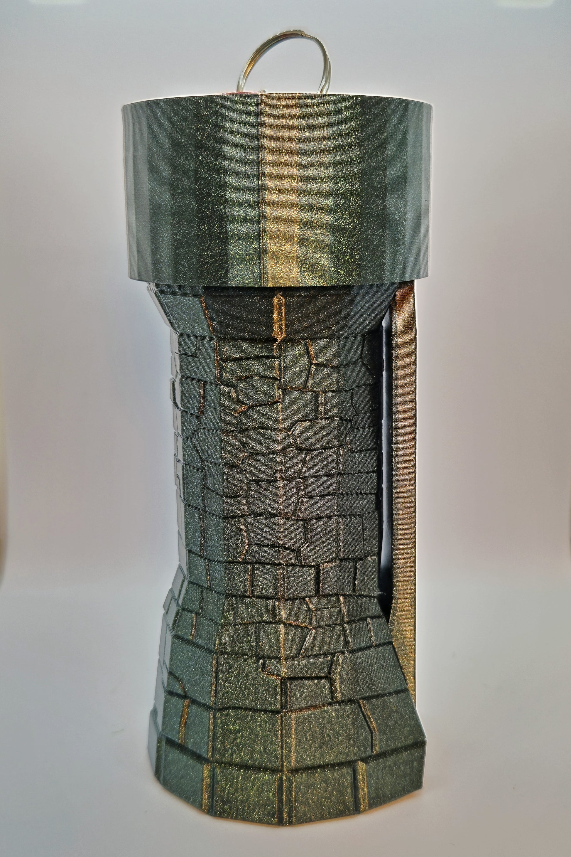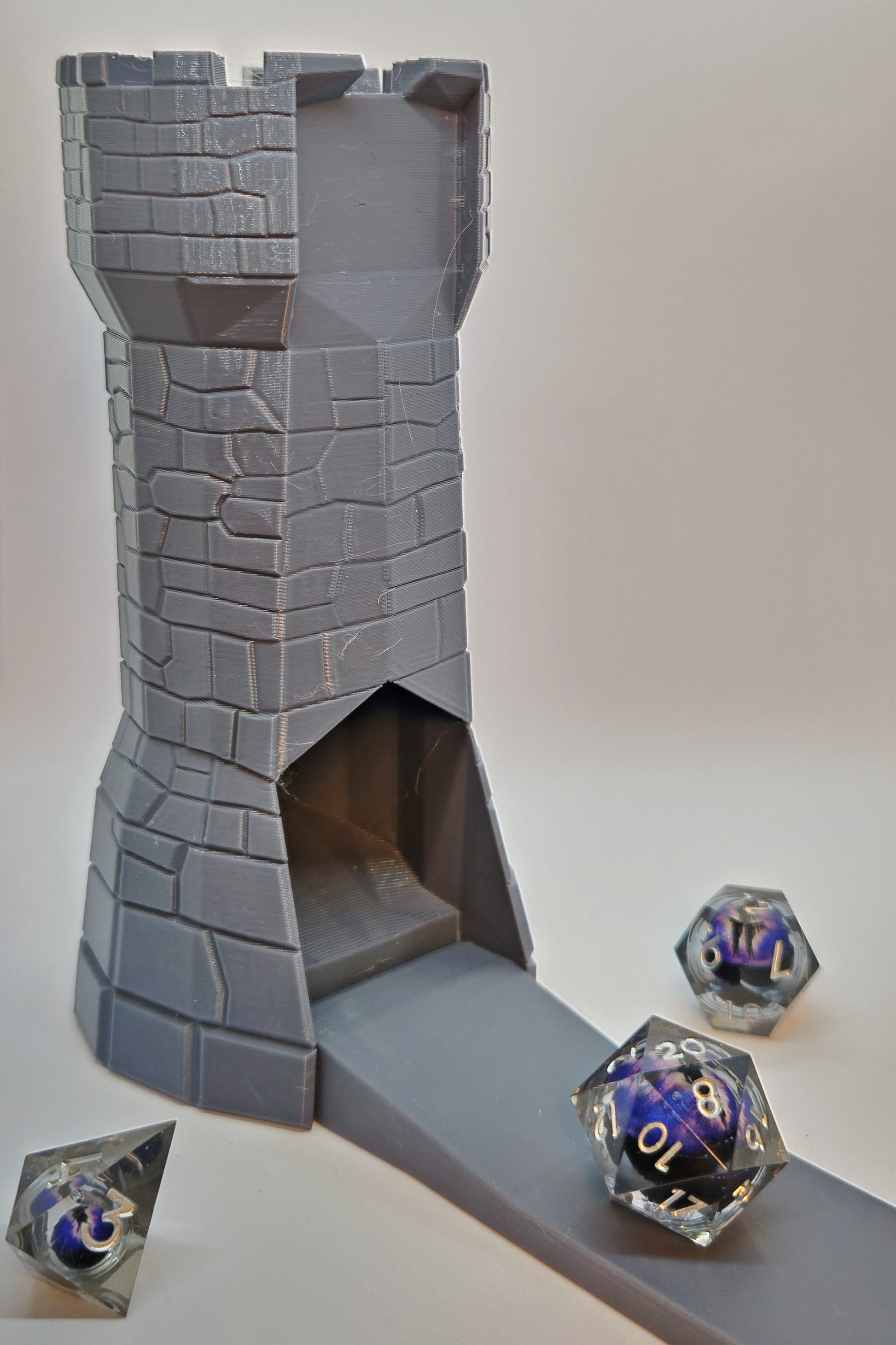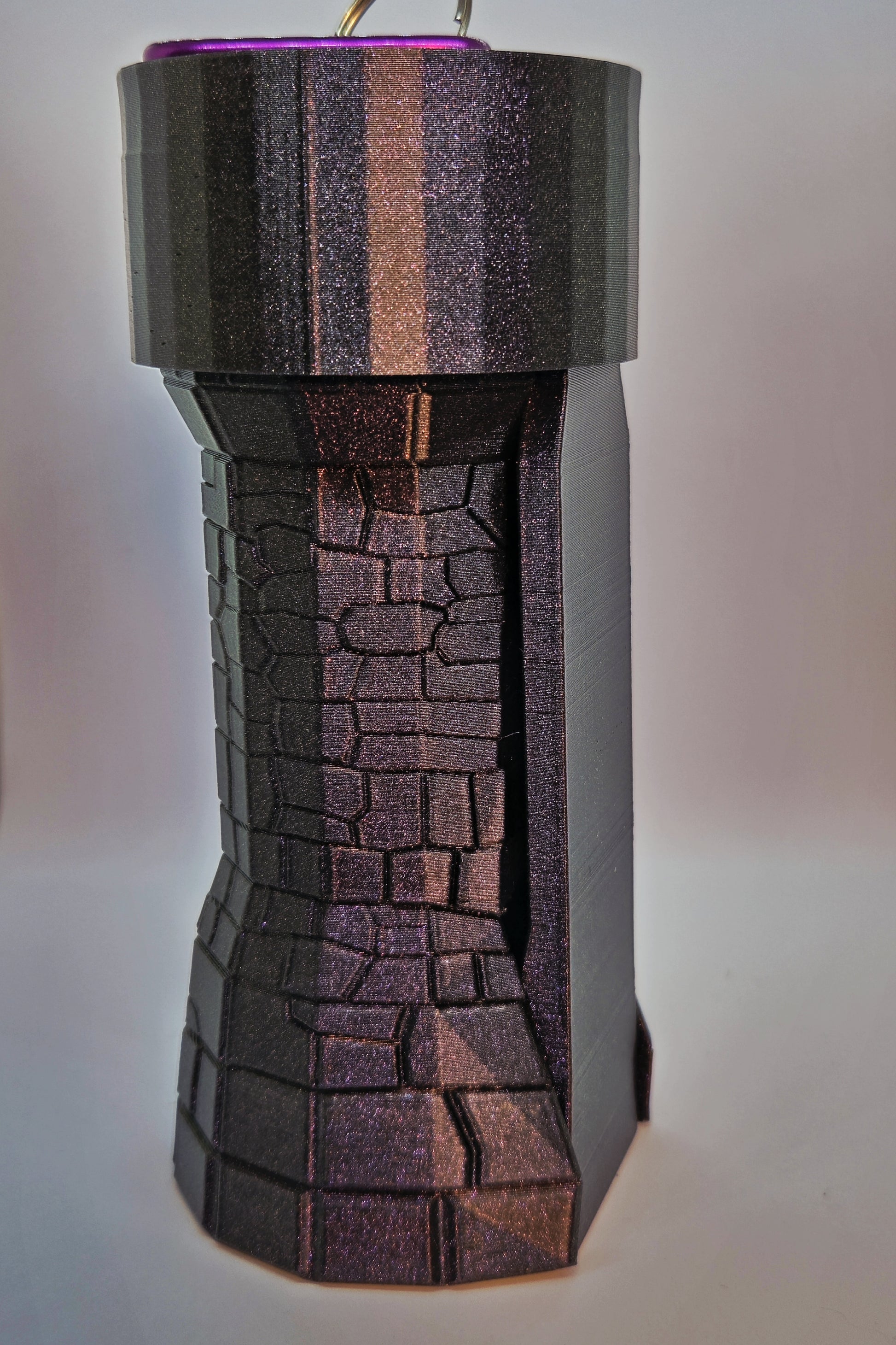 This portable dice tower holds 1 - 2 standard dice sets and features a screw-close design for easy transport and storage. Built for mobility, it comes with a carabiner clip to attach to your bag or gear. Its internal structure matches our signature design, offering consistent rolls wherever you go.